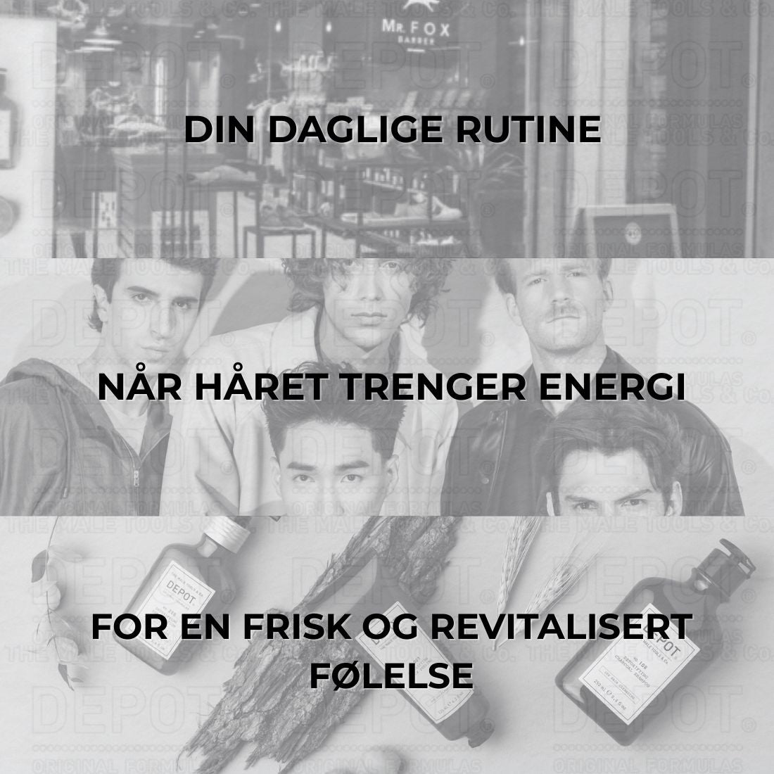 Hair Loss – Invigorating er en målrettet pleie- og stylingrutine fra DEPOT, utviklet for deg som opplever hårtap, svekket hår eller manglende vitalitet. Bundelen kombinerer en stimulerende sjampo, et aktivt hodebunnsserum, en teksturgivende styling og en oppfriskende ansiktsgel – for en komplett, energigivende daglig rutine.
